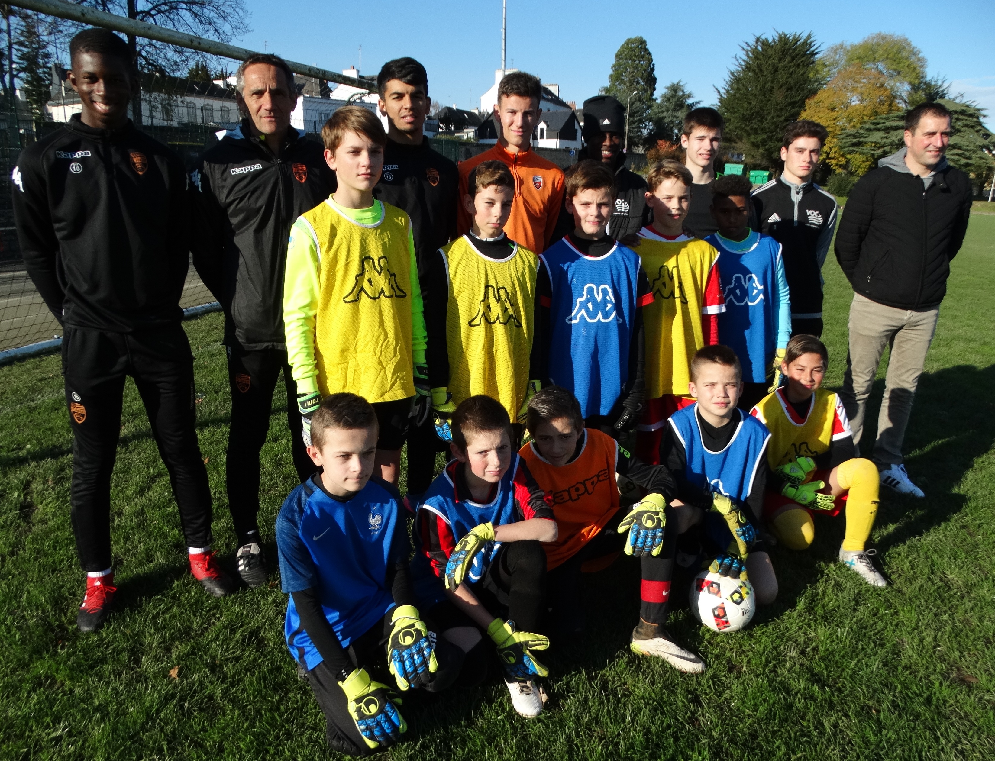 Dans le cadre du partenariat avec le FC LORIENT, le VANNES OLYMPIQUE CLUB a organisé mercredi après-midi une opération portes ouvertes consacrée aux gardiens de but. 12 jeunes gardiens en herbe avaient répondu présent et sous la houlette de Stéphane LE GARREC, entraineur des gardiens du FC LORIENT, assisté notamment d’ Ibou SY, gardien du VOC, ils ont pû découvrir les différents gestes spécifiques du poste et s’adonner aux « plaisirs » du plongeon !