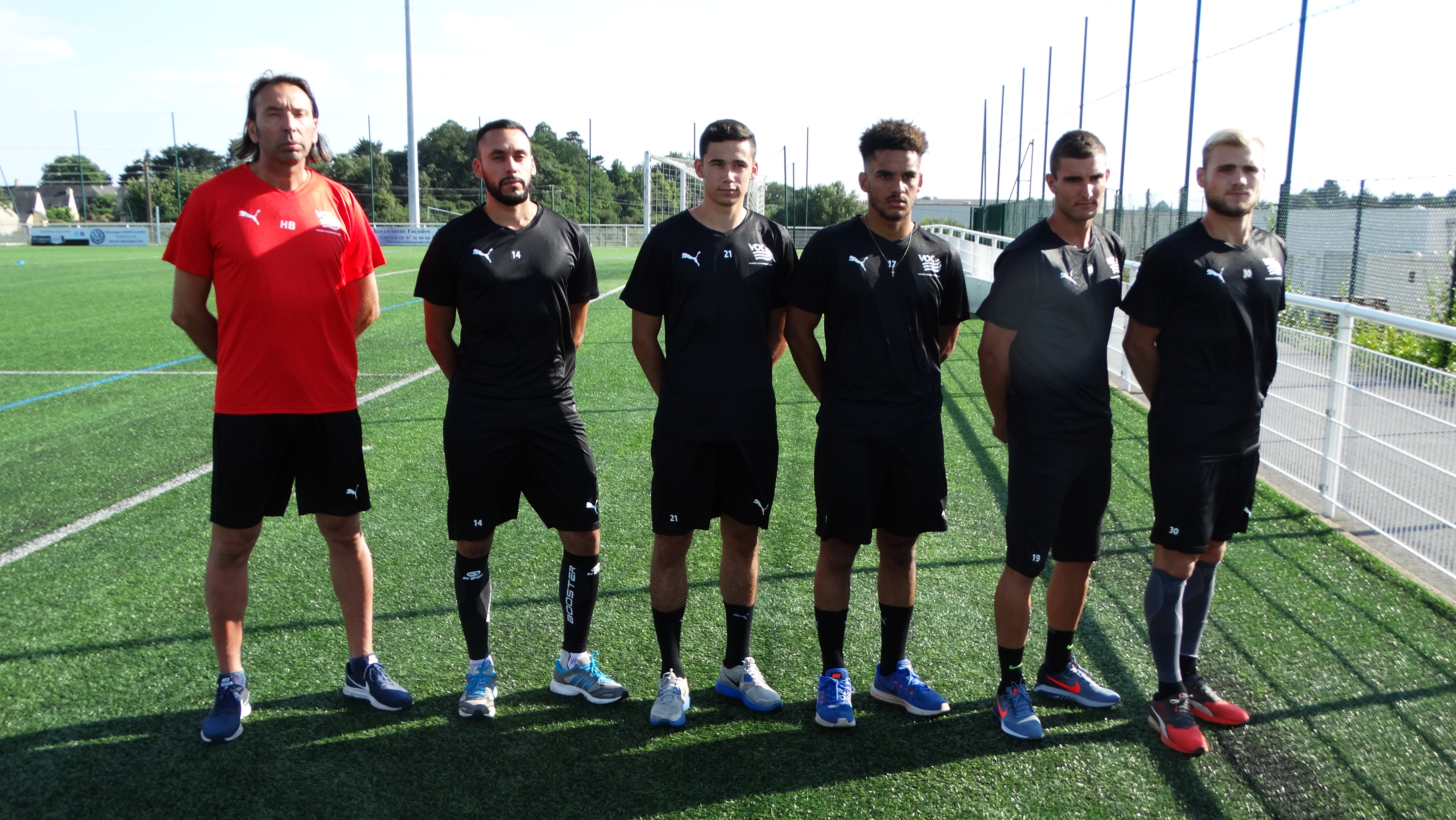 Le groupe N2 de Laurent HERVE a retrouvé le chemin des terrains lundi soir au Pérenno avec notamment un nouveau préparateur physique qui assurera également le rôle d’ entraineur adjoint (Hervé BROUARD pour un retour aux sources…) puis les nouveaux joueurs de gauche à droite : Cyril BENAMARA (ex Concarneau) , Maxence BELLEGO (ex FC Lorient) , Hugo BOURIN (ex FC Nantes), Jordan HENRY (ex FC Lorient) et Walter PERCEVAUX (gardien ex US Orléans). Toute la préparation du mois de juillet s’ effectuera « exceptionnellement », Coupe du Monde Féminine oblige.., au stade de Michelin. Premier match amical mercredi 18 juillet à St Méloir des Ondes face à ST MALO.