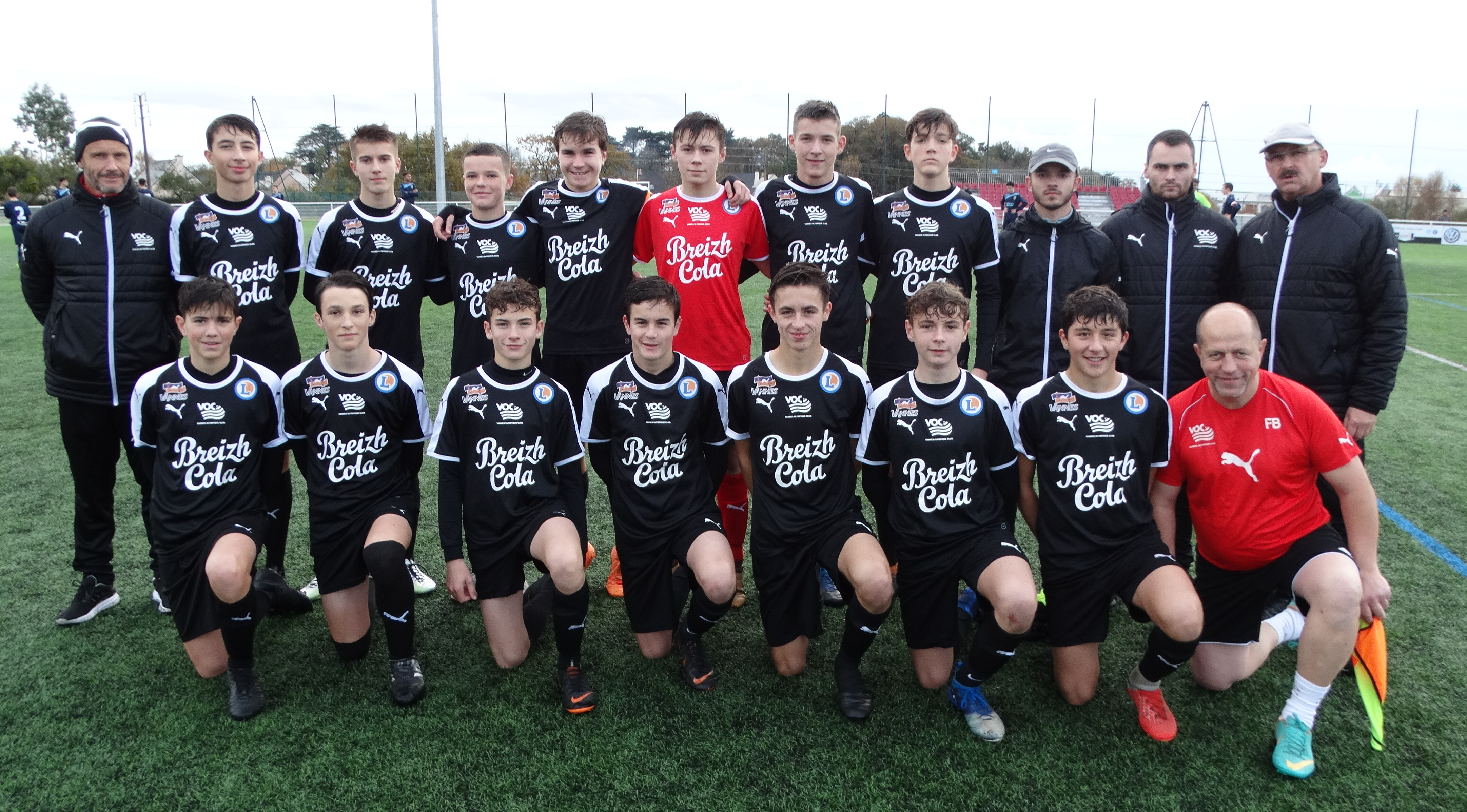 L’ équipe U15 du VANNES OLYMPIQUE CLUB victorieuse de Trégunc hier au Pérenno sur le score de 2 à 0 avec le coach Stéphane MADEC, son adjoint Thibault LE TARNEC, les dirigeants Didier CADORET & Fred BON (également arbitre..). A noter le retour encourageant de Benjamin SCHMIT dans le groupe.