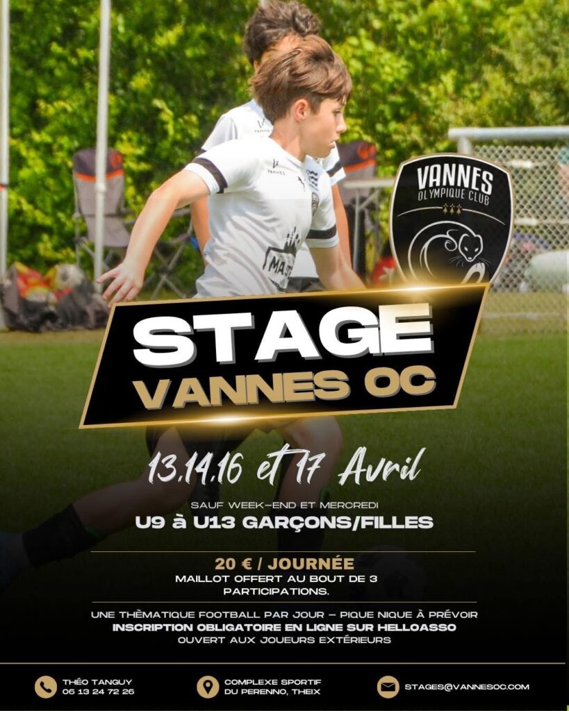 Rejoins notre stage au Vannes OC et progresse dans une ambiance conviviale ! 💪